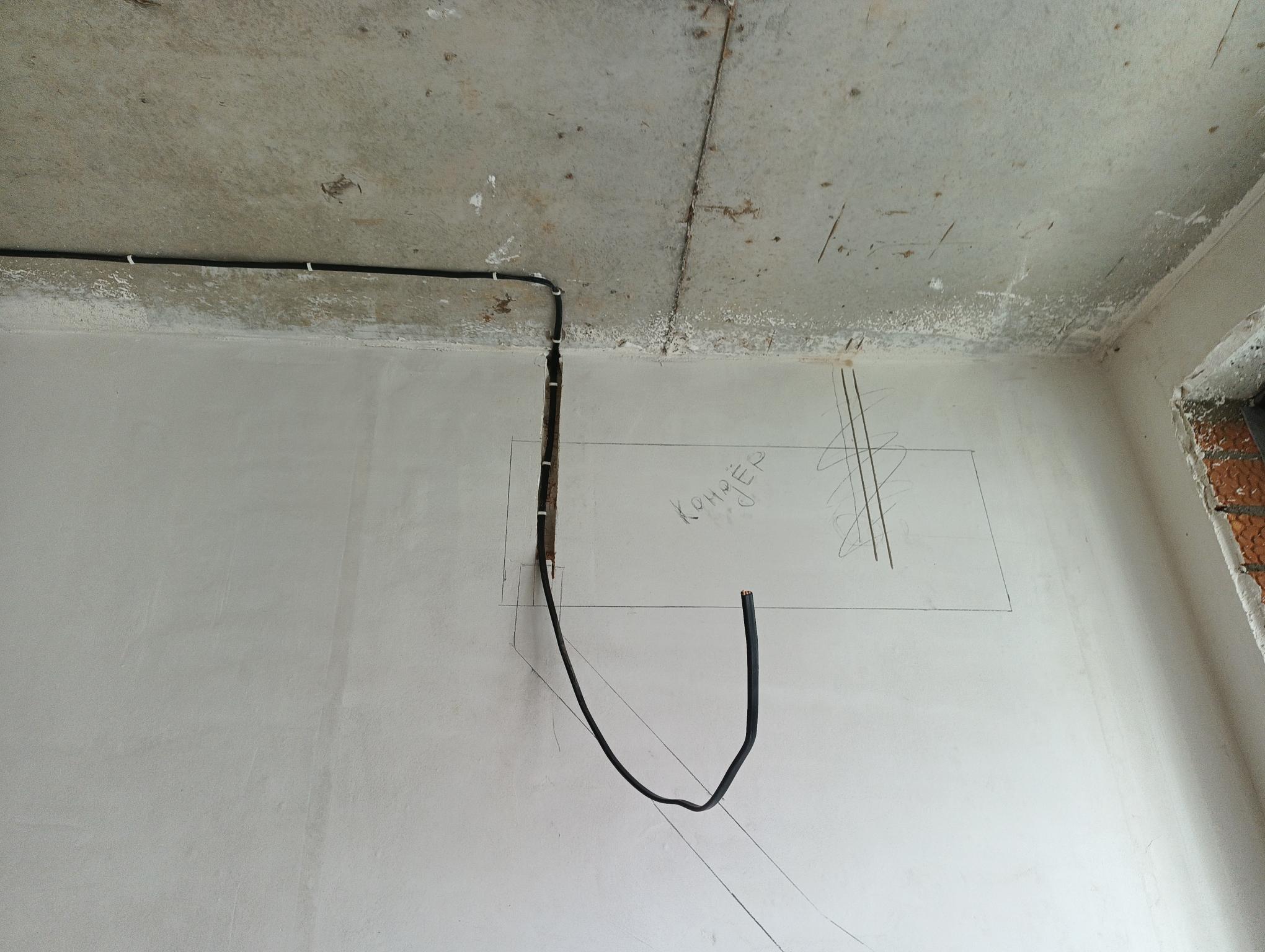С какой стороны нужно делать вывод-штробу под кондиционер, при монтаже новой электропроводки-проводки в квартире в новостройке?
