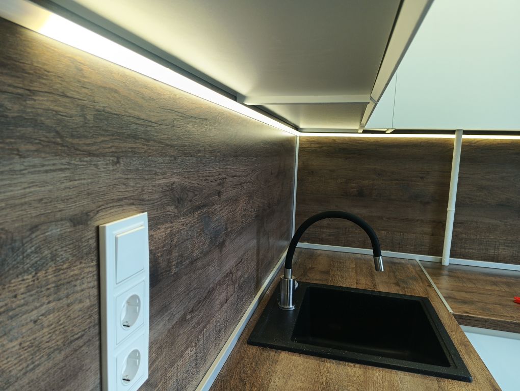 Установка подсветки на кухне в Уфе после установки новой мебели.